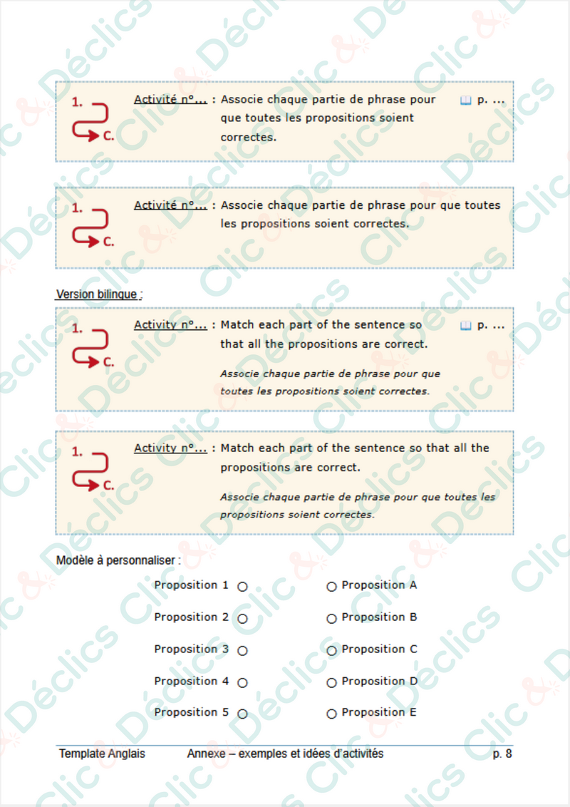 - un fichier annexe avec 15 consignes d’activités mises en forme (en français, en bilingue, avec et sans manuel)