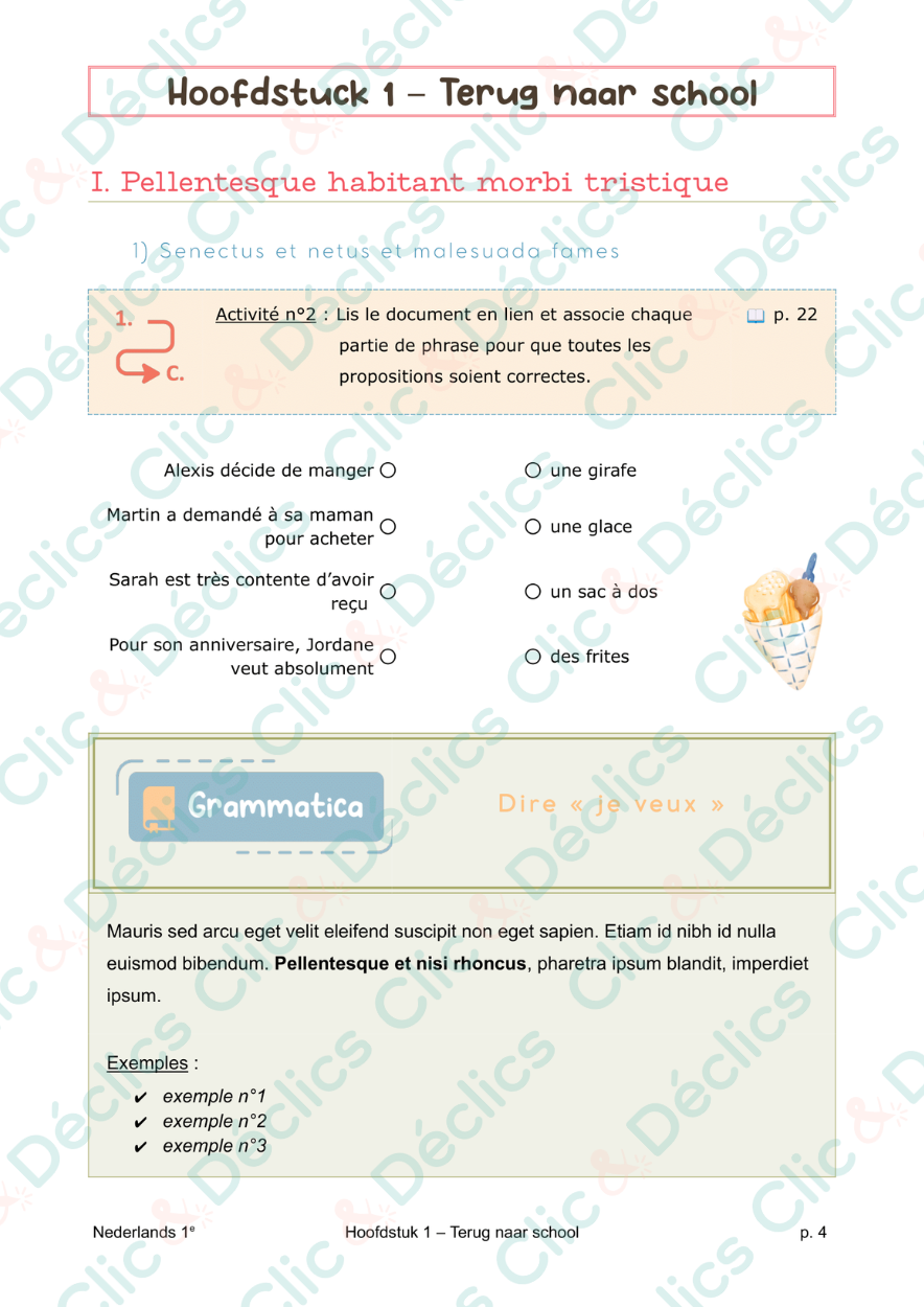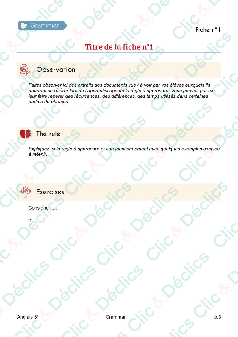 Un dossier dans lequel tu retrouves les polices d’écriture, la palette de couleurs, les pages de garde d’unités, les stickers des consignes et des stickers bonus pour illustrer ton cours comme tu le souhaites, toujours en cohérence !