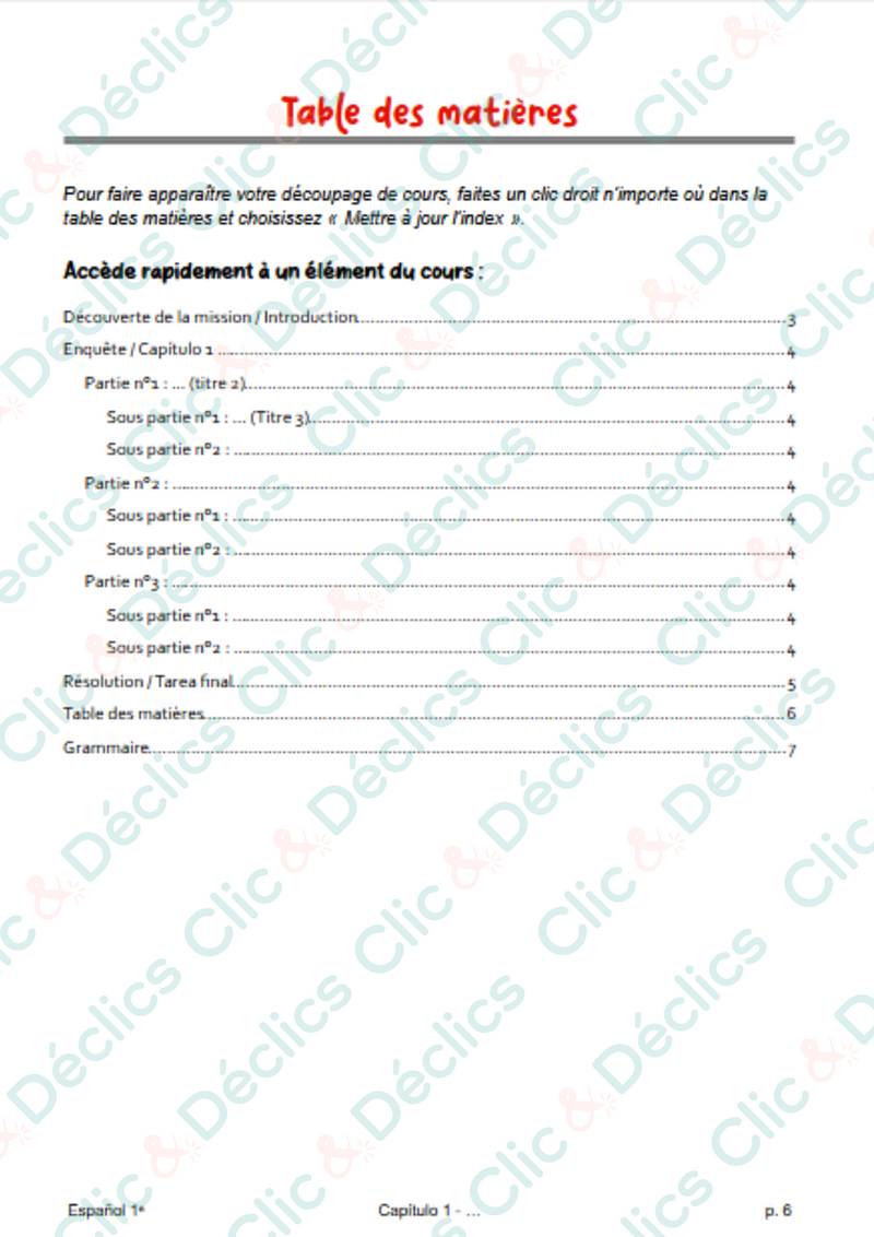- 4 fichiers personnalisables à télécharger (format .odt) incluant une table des matières automatiques